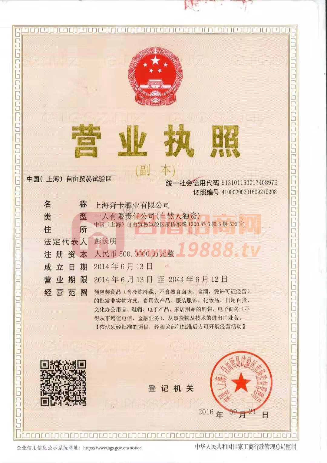 上海奔卡酒业有限公司